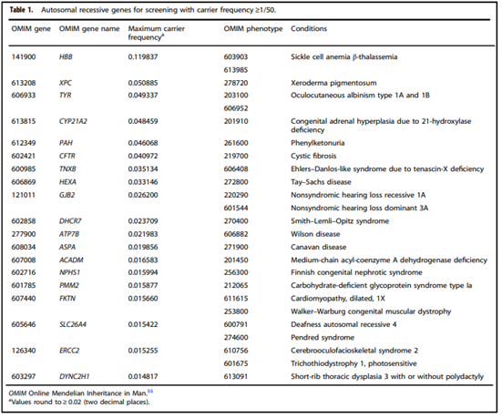 - Gregg, A. R., Aarabi, M., Klugman, S., Leach, N. T., Bashford, M. T., Goldwaser, T., Chen, E., Sparks, T. N., Reddi, H. V., Rajkovic, A., & Dungan, J. S. (2021). Screening for autosomal recessive and X-linked conditions during pregnancy and preconception: a practice resource of the American College of Medical Genetics and Genomics (ACMG). Genet Med, 23(10), 1793-1806. https://doi.org/10.1038/s41436-021-01203-z